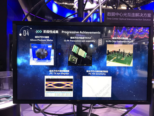 亨通光電是光通信領(lǐng)域的創(chuàng)新者,硅基光電集成技術(shù)亨通展會的一大精彩,亨通洛克利硅光子公司在本次通信展上首次展出了硅光子階段性成果,包括硅光子芯片晶圓、硅光子芯片集成收發(fā)器ROSA和硅光子芯片測試版,還有芯片發(fā)射端眼圖和接收端靈敏度優(yōu)秀測試數(shù)據(jù)。