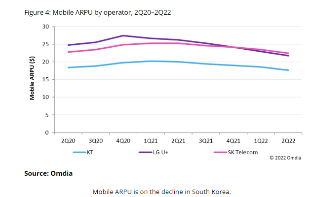 Omdia分析師Anshika Gandotra在報(bào)告中寫(xiě)到:“在經(jīng)歷了兩年的持續(xù)增長(zhǎng)后,韓國(guó)電信(KT)和LG U+的移動(dòng)ARPU重新開(kāi)始下降,而SK電訊(SK Telecon)則保持相對(duì)平穩(wěn),但其5G用戶增長(zhǎng)和收入增長(zhǎng)已經(jīng)陷入停滯狀態(tài)?!?