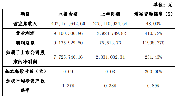 摘要:光器件上市公司博創(chuàng)科技股份有限公司公布2019年度業(yè)績快報。報告期內(nèi),公司實現(xiàn)營業(yè)總收入407,171,642.60 元,較去年同期增長48.00%;歸屬上市公司股東的凈利潤為7,725,740.16元,同比增長231.43%。