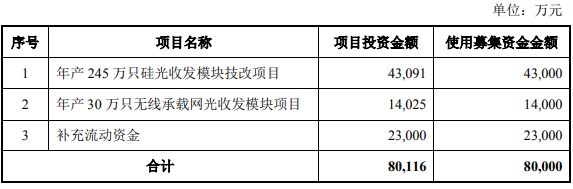 值得一提,博創(chuàng)科技3月2日還發(fā)布了《2020年度創(chuàng)業(yè)板非公開發(fā)行A股股票預(yù)案》,公司擬非公開發(fā)行股票募集資金總額不超過80,000萬,投資用于“年產(chǎn)245萬只硅光收發(fā)模塊技改項目”、“年產(chǎn)30萬只無線承載網(wǎng)光收發(fā)模塊項目”和補充流動資金。