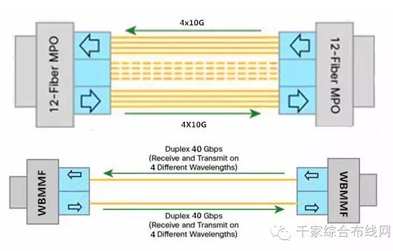 而多模光纖提高網(wǎng)絡(luò)傳輸速率的另外一種方法是采用并行傳輸模式,即通過增加光纖芯數(shù)來增加傳輸速率。2010年發(fā)布的100GBase-SR10采用10Gbps/通道的傳輸方式,10通道接收10通道發(fā)送,總共需要20芯光纖。