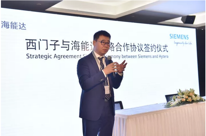 海能達(dá)高級(jí)副總裁曾華、西門子(中國)有限公司執(zhí)行副總裁王海濱代表雙方公司簽署戰(zhàn)略合作協(xié)議。