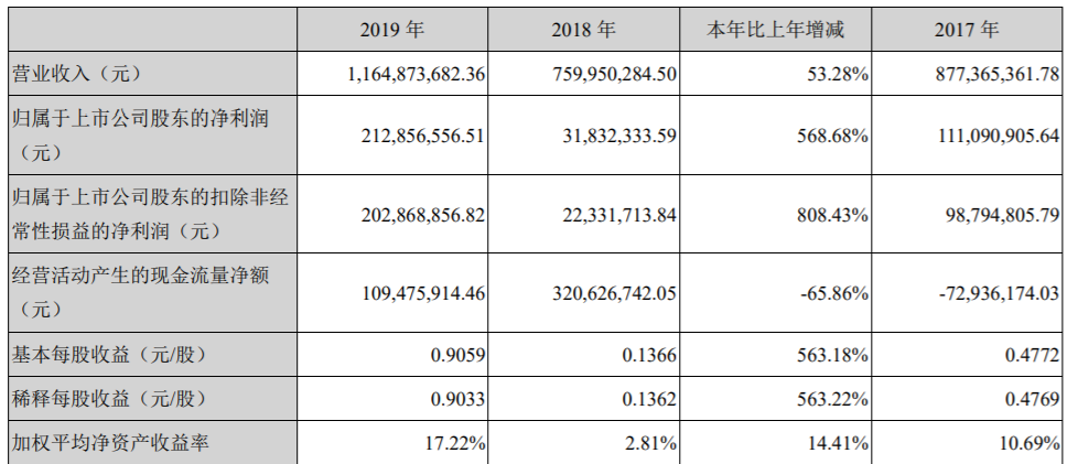 2019年營收及利潤表現(xiàn)(源:新易盛2019年報)