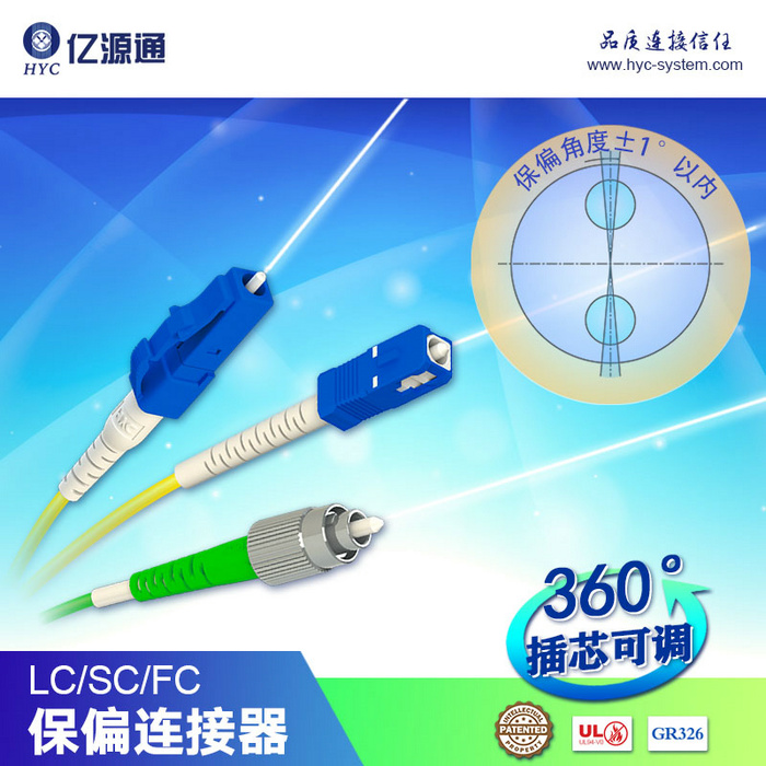 1,HYC自主研發(fā)的保偏連接器,360°插芯可調(diào),保偏角度可控在±1°,消光比25dB以上,領(lǐng)先業(yè)界水平,并受專利保護。