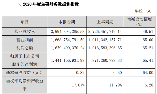 ICC訊 (編輯:Nicole) 潮州三環(huán)(集團(tuán))股份有限公司(以下簡稱“三環(huán)集團(tuán)”或“公司”)發(fā)布2020 年度業(yè)績快報(bào):報(bào)告期內(nèi),公司實(shí)現(xiàn)營業(yè)收入399,439.43 萬元,較上年同期增長 46.51%,實(shí)現(xiàn)利潤總額 167,949.94 萬元,較上年同期增長 65.21%,實(shí)現(xiàn)歸屬于上市公司股東的凈利潤 144,116.69 萬元,較上年同期增長 65.41%。
