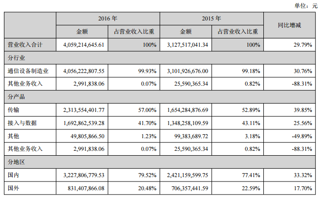 ICCSZ訊 武漢光迅科技股份有限公司(以下簡稱“光迅科技”或“公司”)8日晚間公布2016年年度報告,公司2016年完成營業(yè)收入40.59億元,同比增長29.79%;歸屬股東凈利潤2.74億元,同比增長17.15%,實現(xiàn)“十三五”的良好開局。
