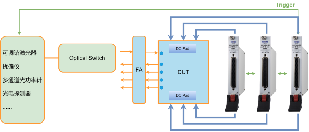 基于PXIe平臺,可與多種類型、多型號PXIe板卡無縫集成,構(gòu)建全自動化測試系統(tǒng)。多張板卡堆疊使用可搭建上百通道源表測試系統(tǒng)。