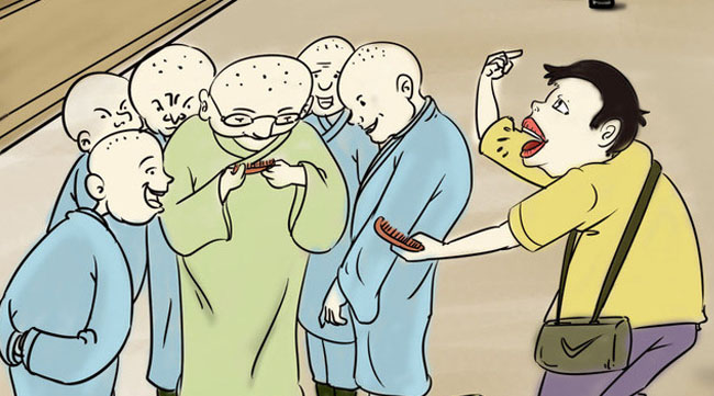 他告訴和尚,梳子是善男信女的必備之物,經(jīng)常被女香客帶是在身上,如果大師能為梳子開(kāi)光,成為她們的護(hù)身符,既能積善行善、又能保佑平安,很多香客 還能為 自己的親朋好友請(qǐng)上一把,保佑平安,弘揚(yáng)佛法,揚(yáng)我寺院之名,豈不是天大善事?大師豈有不做之理?阿彌陀夫,善哉!善哉!大師雙手合十,施主有這番美意, 老衲豈能不從?