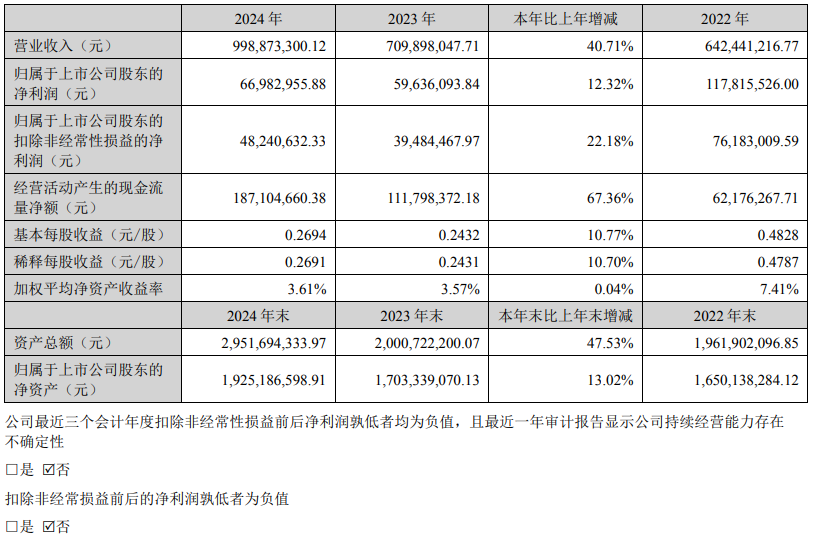 3月29日,珠海光庫(kù)科技股份有限公司(簡(jiǎn)稱“光庫(kù)科技”或“公司”,300620)發(fā)布2024年年度報(bào)告。2024年,光庫(kù)科技實(shí)現(xiàn)營(yíng)業(yè)收入9.99億元,同比增長(zhǎng)40.71%,主要是本報(bào)告期公司積極拓展國(guó)內(nèi)外市場(chǎng)、開發(fā)新客戶,收購(gòu)拜安實(shí)業(yè) 52%股權(quán)所致;凈利潤(rùn) 7248.87萬元,同比增長(zhǎng)21.55%;歸屬于上市公司股東的凈利潤(rùn)6698.3萬元,同比增長(zhǎng)12.32%,主要是隨著銷售收入增長(zhǎng),凈利潤(rùn)相應(yīng)增長(zhǎng)所致。