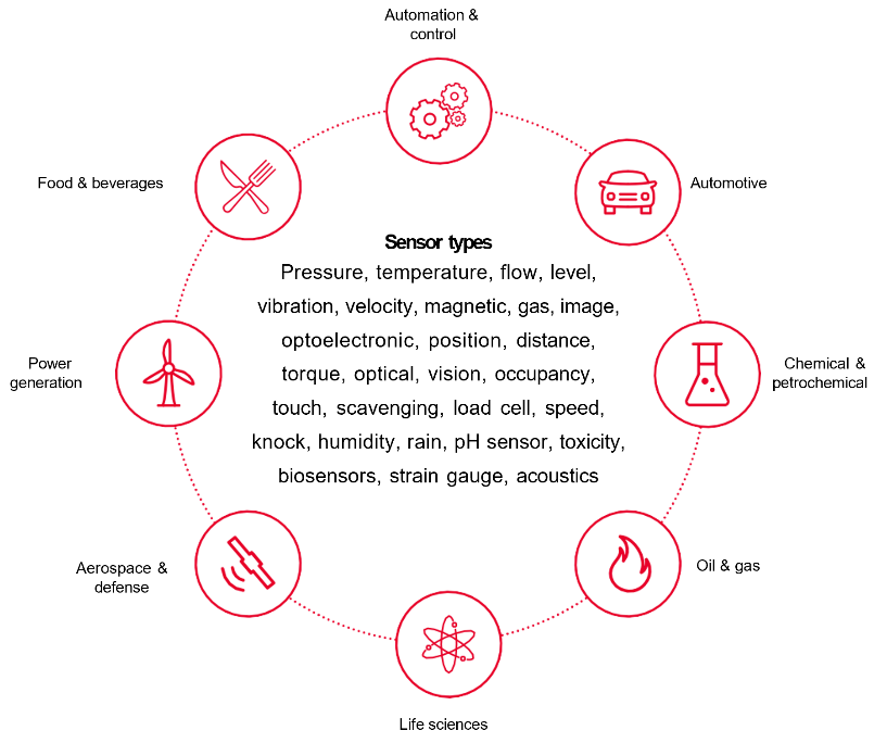 圖 1. 不同類型傳感器和主要傳感器市場(chǎng)的示例