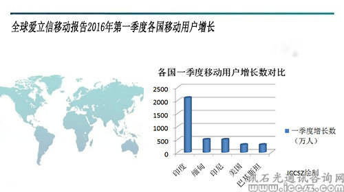 本月初公布的全球愛立信移動報告指出,2016年第一季度,從移動用戶增長角度來看,印度排名第一,凈增2100萬;緬甸排名第二,增加500萬;印度尼西亞第三,增加500萬;美國第四,增加300萬;最后是巴基斯坦,增加300萬。