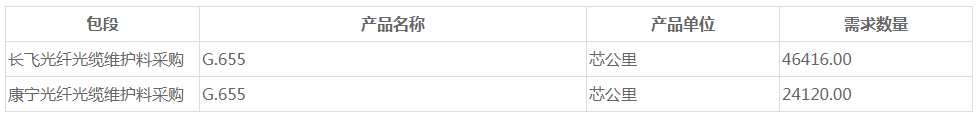 根據(jù)公告顯示,該項目對光纖光纜維護料的總需求達70536芯公里。