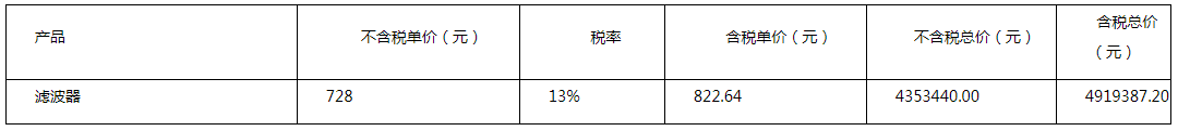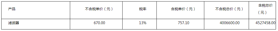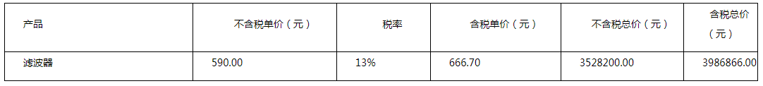 根據(jù)此前公布的招標(biāo)公告顯示,本次預(yù)計(jì)采購5980個(gè)濾波器,預(yù)算上限金額為不含稅600.0033萬元,實(shí)際發(fā)生金額以訂單為準(zhǔn),不劃分標(biāo)包。本項(xiàng)目設(shè)置最高投標(biāo)限價(jià),不含稅總預(yù)算600.0033萬元,稅率13%,含稅總預(yù)算678.003729萬元。