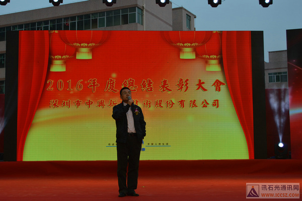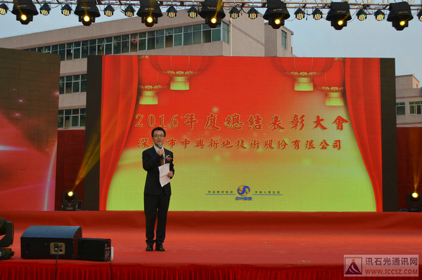 中興新地董事長翟衛(wèi)東先生最后為大會做致辭,翟總首先祝大家在新的一年里有更加美好的前景!總結(jié)2016年,他認(rèn)為在2016開局不利的情況下,通過234季度的努力,最終是超過2015年獲得一個(gè)新高度,特別是光通訊事業(yè)部和結(jié)構(gòu)件事業(yè)部,一個(gè)事業(yè)部超過3個(gè)億,另一個(gè)突破一個(gè)億,這是非常不容易的成就。在此翟總向高總所代表的團(tuán)隊(duì)帶領(lǐng)公司所取得的成績表示衷心的祝賀,同時(shí)也感謝廣大員工克服困難所給公司做出的貢獻(xiàn)。翟總展望2017年公司定下更高的目標(biāo),即使會遇到更多困難,相信在公司精英班子的帶領(lǐng)下,一定能實(shí)現(xiàn)2017年目標(biāo)!最后翟總代表大股東表態(tài),董事會愿意一如既往支持中興新地的發(fā)展。在新年既要來臨之際,祝愿各位來賓和所有員工新年快樂,大吉大利!