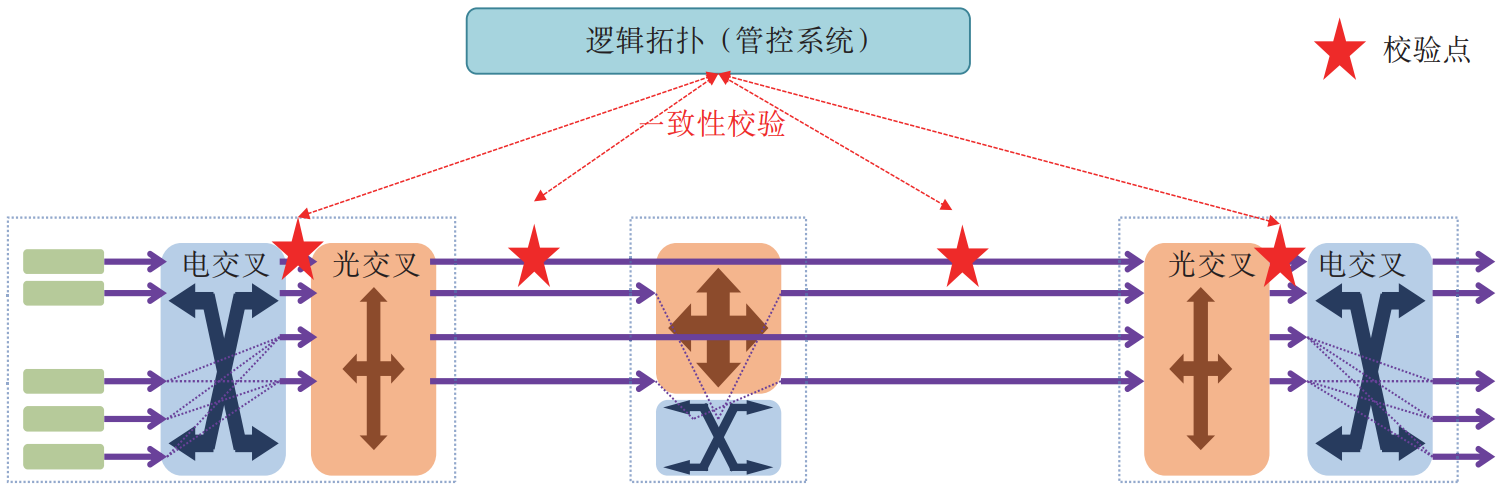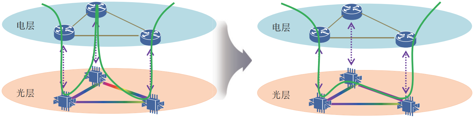 結(jié)合光層和電層技術(shù)特點(diǎn),光電聯(lián)動(dòng)全光網(wǎng)是干線傳輸網(wǎng)的演進(jìn)方向??紤]到光層技術(shù)能力限制,需在有小顆粒調(diào)度、信號(hào)再生、波長(zhǎng)沖突的節(jié)點(diǎn)部署電交叉能力。同時(shí),在管控層面需引入光電兩層協(xié)同機(jī)制,實(shí)現(xiàn)光電深度融合的光電聯(lián)動(dòng)全光網(wǎng)。