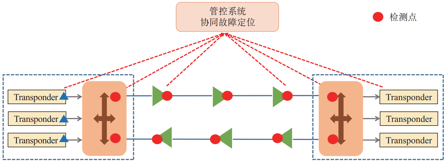 (4)檢測(cè)到波長(zhǎng)路徑不一致的節(jié)點(diǎn)向管控系統(tǒng)發(fā)送光纖錯(cuò)連告警,管控系統(tǒng)可根據(jù)發(fā)送告警的節(jié)點(diǎn),判斷光纖錯(cuò)連發(fā)生的具體位置。