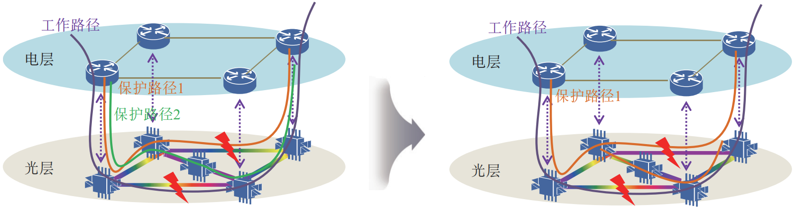 圖5 通過(guò)光電聯(lián)動(dòng)實(shí)現(xiàn)光層直通路由