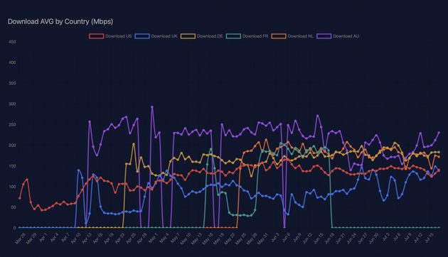 ICC訊 7月19日消息 根據(jù)美國、歐洲和其他國家的聚合收集數(shù)據(jù),太空探索技術(shù)公司 (SpaceX) 基于 Starlink 衛(wèi)星的互聯(lián)網(wǎng)服務(wù)在全球的平均下載速度已超過 150 Mbps。那么,哪個國家和地區(qū)的網(wǎng)速最好,哪個國家和地區(qū)最差呢?
