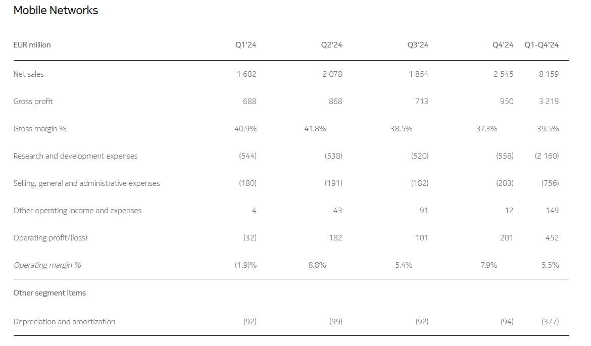 諾基亞公布了2024年第一季度至第四季度移動網(wǎng)絡(luò)和云和網(wǎng)絡(luò)服務(wù)部門的財務(wù)對比數(shù)據(jù),反映了管理服務(wù)業(yè)務(wù)的轉(zhuǎn)移。