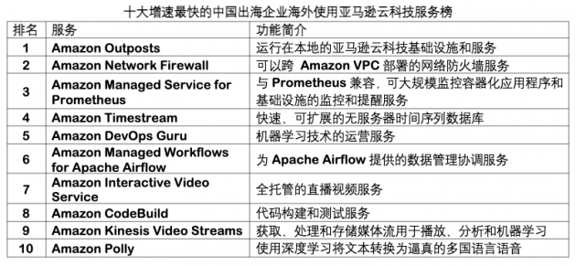 ICC訊 5月23日消息,亞馬遜云科技根據(jù)中國出海企業(yè)海外使用云服務(wù)的情況,發(fā)布了十大最受中國出海企業(yè)青睞的亞馬遜云科技服務(wù)榜單。