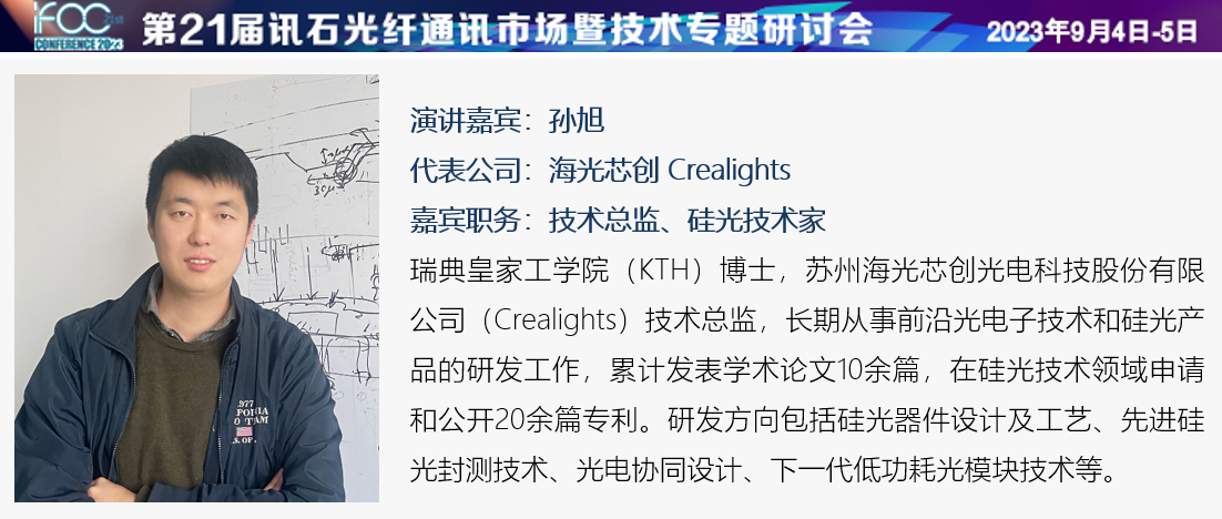 本屆iFOC訊石研討會,蘇州海光芯創(chuàng)光電科技股份有限公司硅光子學專家、技術總監(jiān)孫旭博士將發(fā)表行業(yè)報告《硅光技術,賦能綠色數(shù)據(jù)中心》,硅光技術作為集成電路的延展技術,基于成熟穩(wěn)定的CMOS工藝平臺以及半導體封測平臺,利用fabless的產(chǎn)業(yè)鏈模式,賦能綠色智能化數(shù)據(jù)中心實現(xiàn)碳達峰碳中和的目標。隨著綠色數(shù)據(jù)中心的大力發(fā)展,如何在提升速率的同時減緩光模塊的功耗、成本包括投資成本的增加,是目前數(shù)據(jù)中心高速光模塊發(fā)展路線的巨大挑戰(zhàn)。本報告將圍繞低功耗、低成本的技術需求,討論硅光技術在先進封裝、光電協(xié)同設計、新型光模塊形態(tài)等方面在下一代綠色數(shù)據(jù)中心中光模塊應用中的機會和挑戰(zhàn)。