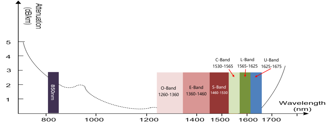 圖1 單模光纖可用波段