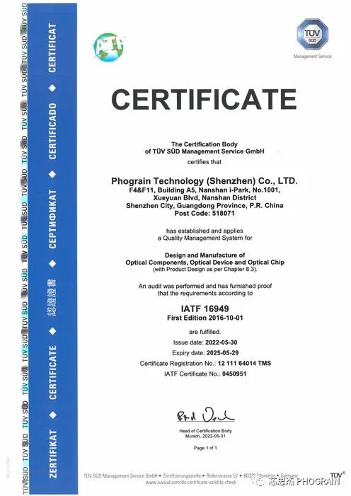 ICC訊  熱烈祝賀芯思杰順利通過國際車規(guī)級智能汽車光芯片、器件、組件級IATF16949質(zhì)量管理體系認(rèn)證。芯思杰研發(fā)和智造中心歷時六年不斷的科技創(chuàng)新,堅守微觀技術(shù)創(chuàng)芯制高點,充分發(fā)揮企業(yè)產(chǎn)業(yè)化技術(shù)能力,在2022年成功取得了國際汽車行業(yè)的重要資質(zhì)。標(biāo)志著芯思杰全面開啟了服務(wù)全球智能化汽車的新時代!
