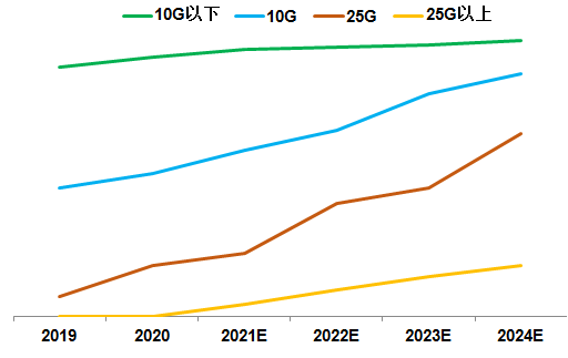 從目前看中國(guó)光芯片處在不斷往上走的發(fā)展勢(shì)頭,尤其是近年在核心器件自主化浪潮的推動(dòng)下,中國(guó)光芯片發(fā)展迅速。現(xiàn)階段10G以下激光器芯片與探測(cè)器芯片主要是以中國(guó)企業(yè)為主。同時(shí),中國(guó)企業(yè)也開始積極參與到了10G DFB芯片全球競(jìng)爭(zhēng)中。在25G領(lǐng)域,從2019年開始,國(guó)內(nèi)芯片企業(yè)均開始積極布局25G DFB用于5G前傳領(lǐng)域芯片,到。在25G探測(cè)器方面,我國(guó)芯片企業(yè)2017年就已經(jīng)開始布局并發(fā)布相關(guān)產(chǎn)品。