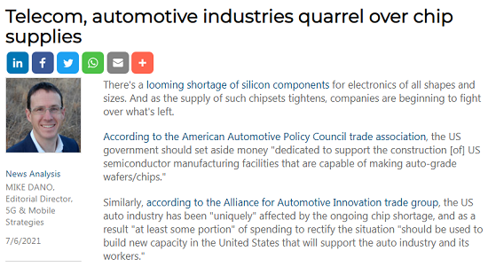 該組織在回應FCC針對半導體芯片短缺及其可能對美國造成的影響展開的調(diào)查時寫道:“在全球經(jīng)濟中如此多的行業(yè)都依賴半導體芯片的情況下,為汽車業(yè)留出特定的行業(yè)資金顯然是不合適的?!?