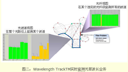 在降低光網(wǎng)絡(luò)的初始投資成本和運維成本目前看似有一定的矛盾之處,即一般認為OEO的處理方式可以實現(xiàn)類似SDH的運維管理,容易實現(xiàn)網(wǎng)絡(luò)的管理和維護,但這種方式要求設(shè)備具備足夠的電交叉處理能力,初始投資和設(shè)備功耗居高不下。相反,基于WSS等技術(shù)的OOO處理方式可以將業(yè)務(wù)盡可能處理在最低的層面,網(wǎng)絡(luò)初始投資和功耗最低,但通常運營商對全光業(yè)務(wù)的管理缺乏足夠的手段。本文主要介紹阿爾卡特朗訊基于Wavelength TrackTM技術(shù)所實現(xiàn)的對全光網(wǎng)絡(luò)的類似SDH管理能力。