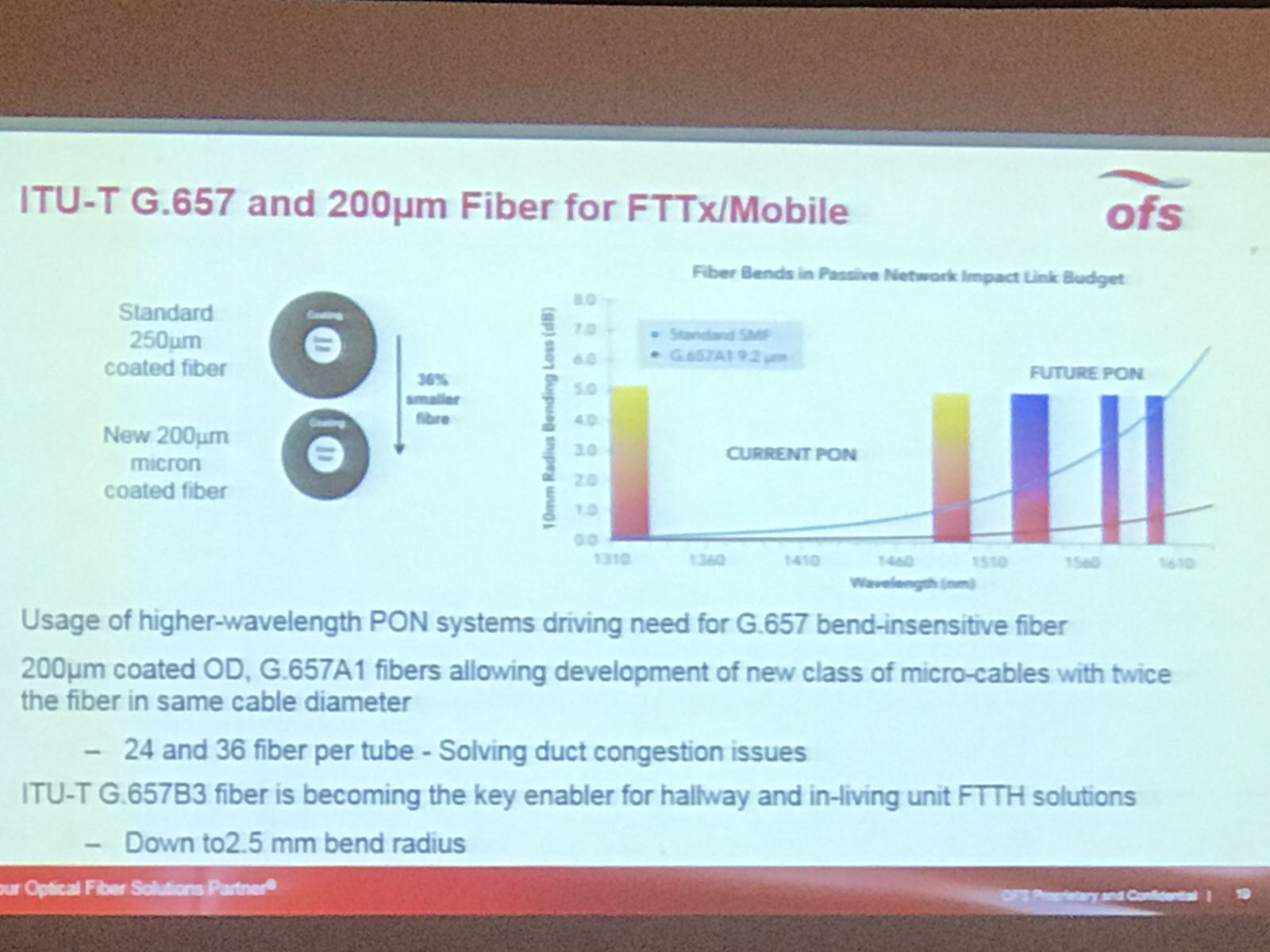 隨后,來(lái)自OFS 公司的執(zhí)行顧問(wèn) Peter Arnoff Nielsen發(fā)表了《光纖發(fā)展的最新趨勢(shì)》的演講,演講摘要:有關(guān)光纖近期主要發(fā)展的演講。例如在海洋和陸地長(zhǎng)途傳輸領(lǐng)域?yàn)橄佘障到y(tǒng)優(yōu)化額光纖、數(shù)據(jù)中心互連的高芯數(shù)光纜、FTTx應(yīng)用額抗彎光纖、其他領(lǐng)域的緊湊光纖等。