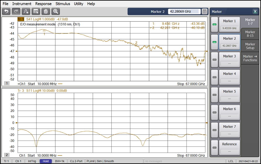 圖2電光響應(yīng)(3dB帶寬42GHz)