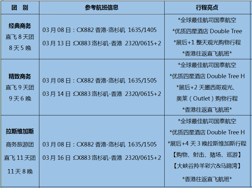 除經(jīng)典商務(wù)團(tuán)外,還有9天6晚精致商務(wù)團(tuán)和11天8晚拉斯維加斯商務(wù)旅游團(tuán),更多關(guān)于展會(huì)詳情歡迎咨詢訊石工作人員,請(qǐng)撥打電話:0755-82960080或掃描下方二維碼添加微信。