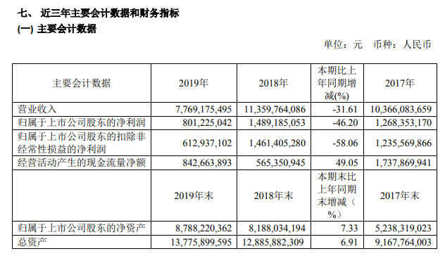 ICC訊 4月24日,長(zhǎng)飛光纖光纜股份有限公司公布2019 年年度報(bào)告。長(zhǎng)飛光纖2019年實(shí)現(xiàn)營(yíng)業(yè)收入77.69億元,同比下降31.61%;實(shí)現(xiàn)歸屬于上市公司股東的凈利潤(rùn)8.01億元,同比下降46.2%。2019 年,光纖光纜行業(yè)供需關(guān)系調(diào)整,競(jìng)爭(zhēng)加劇,導(dǎo)致光纖光纜產(chǎn)品單價(jià)大幅下降,公司營(yíng)業(yè)收入及利潤(rùn)水平承受較大壓力。