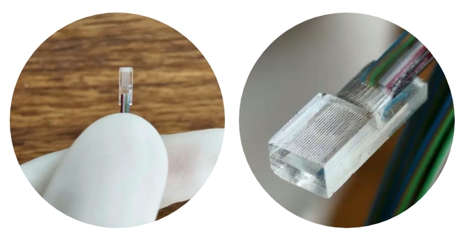 以FA頭膠為例,膠水填充在光纖與V型槽的微小間隙,通常僅幾微米至幾十微米。