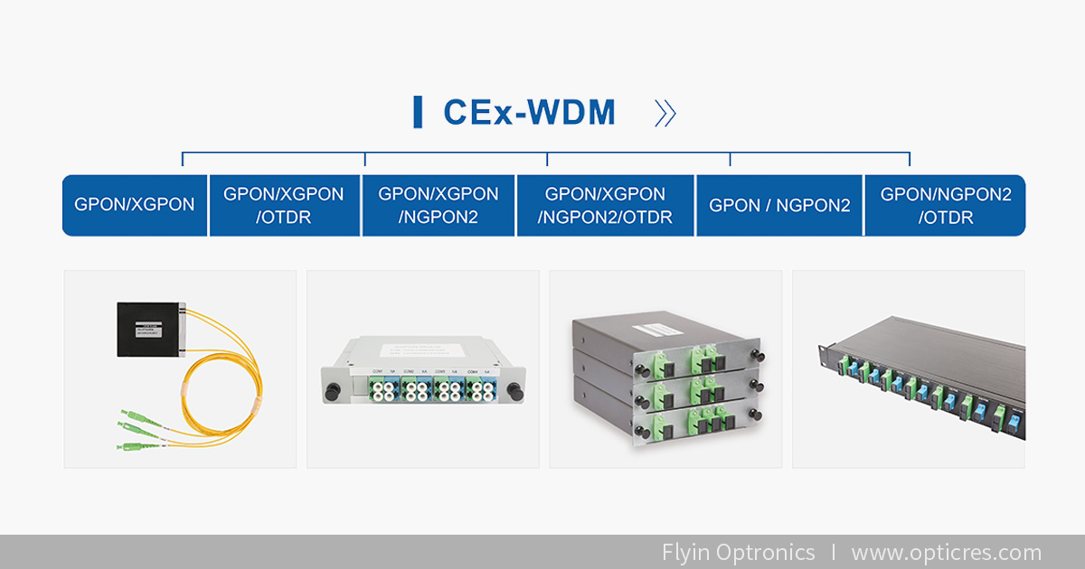 ①波分復(fù)用器:CCWDM迷你型波分復(fù)用器、CEx WDM-PON模塊、CWDM粗波分復(fù)用器、DWDM密集型波分復(fù)用器、AWG(AWG Type CWDM4 Mux/Demux)等。
