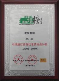 供應(yīng)商50強(qiáng)(第15名)”和“2009-2010中國通信產(chǎn)業(yè)用戶滿意企業(yè)(第1名)”兩大獎(jiǎng)項(xiàng)。這已經(jīng)是俊知集團(tuán)第三次入圍“通信設(shè)備