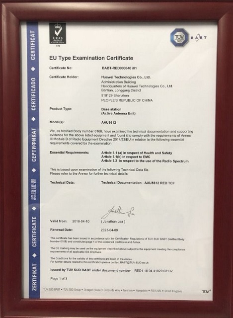 本次華為5G產(chǎn)品的CE認(rèn)證全程由TüV SüD承擔(dān),TüV SüD是一家擁有Notified Body資質(zhì)的歐洲權(quán)威認(rèn)證機(jī)構(gòu),總部位于德國慕尼黑,致力于專業(yè)測試、檢驗(yàn)、認(rèn)證,并擁有超過150年的歷史,在通信產(chǎn)品認(rèn)證有著豐富的經(jīng)驗(yàn),并擁有權(quán)威的行業(yè)專家和一流的檢測平臺,是全球頗有影響力的第三方檢驗(yàn)機(jī)構(gòu)。