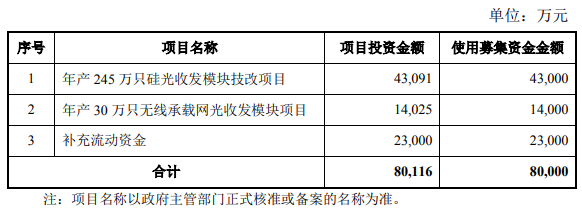 一、“年產(chǎn)245萬只硅光收發(fā)模塊技改項目”