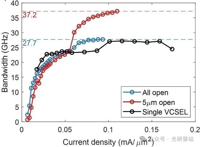 全孔徑收集:帶寬僅27.7GHz(與傳統(tǒng)VCSEL相當(dāng))。