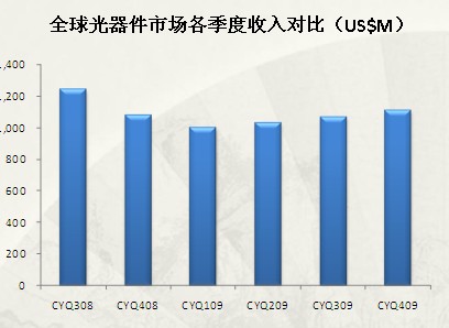 我們所重點(diǎn)關(guān)注的器件領(lǐng)域,從2008年9月金融海嘯爆發(fā)至今,已經(jīng)過去一年多。2009年第一季度,大部分光器件商遭遇訂單和收入的低谷。隨著經(jīng)濟(jì)漸趨穩(wěn)定,器件商們的訂單也開始恢復(fù)增長(zhǎng),大部分器件商銷售收入環(huán)比溫和增長(zhǎng)。此外,金融危機(jī)也加速了光器件行業(yè)整合。2009年,Avanex與Bookham合并,Oclaro和Newport交換資產(chǎn),JDSU出售深圳工廠,收購Finisar Network Tools業(yè)務(wù)。廠商們都在穩(wěn)固在各自領(lǐng)先市場(chǎng)的地位,并努力精簡(jiǎn)開支,保留現(xiàn)金。