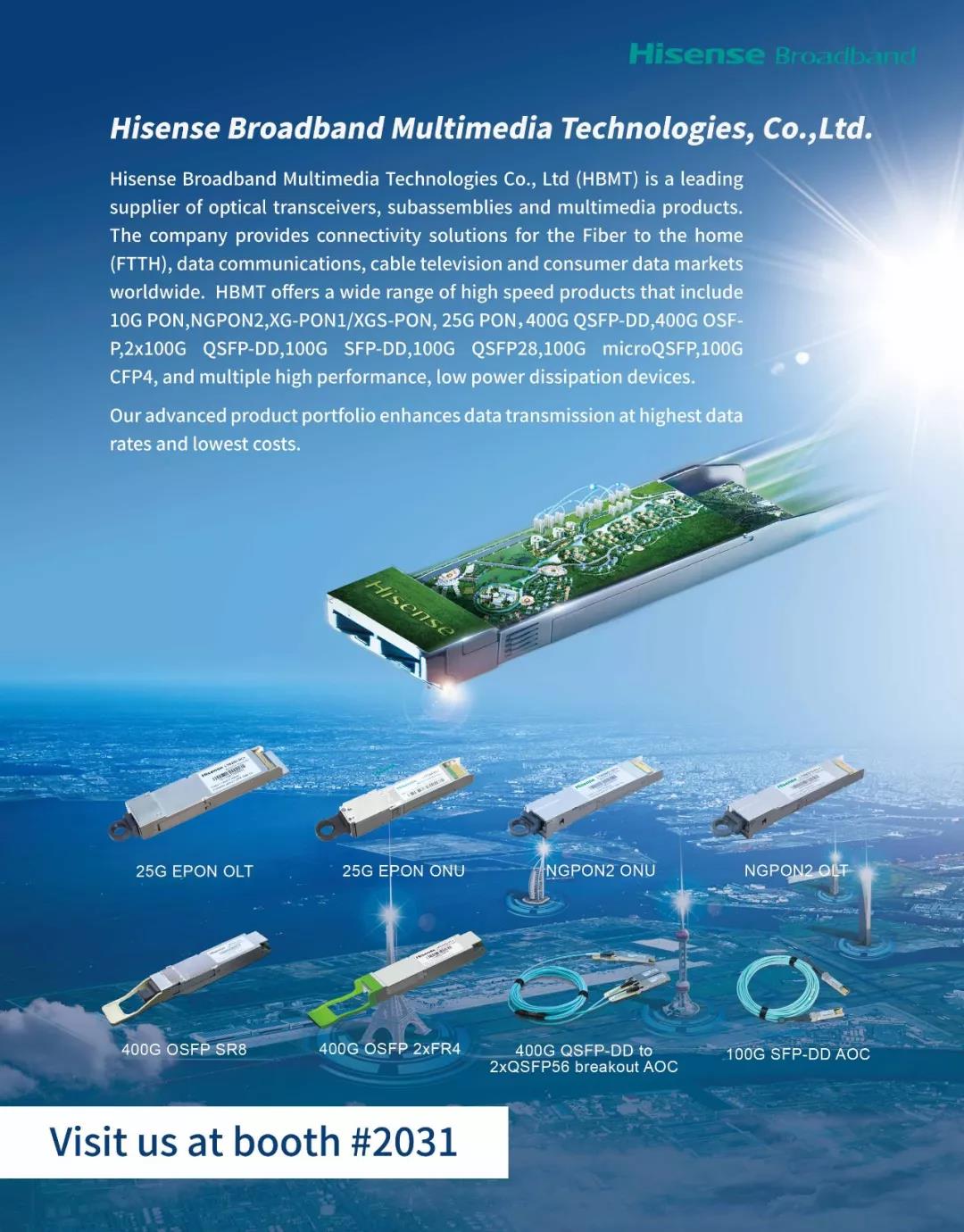 海信寬帶攜數(shù)款接入網(wǎng)和數(shù)通網(wǎng)高端產(chǎn)品參加2018OFC展會,展位號#2031,歡迎行業(yè)專家同仁參觀交流!