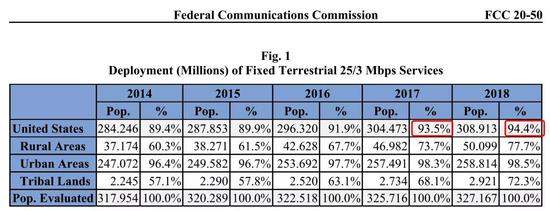 美國(guó)寬帶部署情況,圖源:FCC