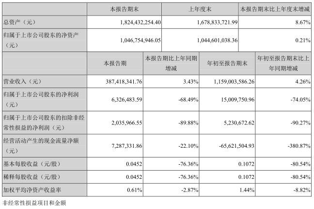ICCSZ訊(編輯:Debi)10月23日晚間,東莞銘普光磁股份有限公司(銘普光磁,002902)發(fā)布2018年第三季度報(bào)告。2018年第三季度,銘普光磁實(shí)現(xiàn)營(yíng)業(yè)收入3.87億元,同比增長(zhǎng)3.43%;歸屬于上市公司股東的凈利潤(rùn)632.64萬(wàn)元,同比下降68.49%。而2018年前三季實(shí)現(xiàn)營(yíng)業(yè)收入11.59億元,同比增長(zhǎng)4.26%;歸屬于上市公司股東的凈利潤(rùn)1500萬(wàn)元,同比下降74.05%。