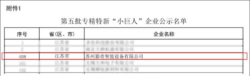 ICC訊 近日,國(guó)家工業(yè)和信息化部組織開(kāi)展的第五批專(zhuān)精特新“小巨人”企業(yè)培育工作已完成相關(guān)審核及公示程序, 根據(jù)江蘇省工信廳發(fā)布的《關(guān)于江蘇省第五批專(zhuān)精特新“小巨人”企業(yè)和第二批專(zhuān)精特新“小巨人”復(fù)核通過(guò)企業(yè)名單的公示》,蘇州獵奇智能設(shè)備有限公司成功入選工信部第五批專(zhuān)精特新“小巨人”企業(yè)。