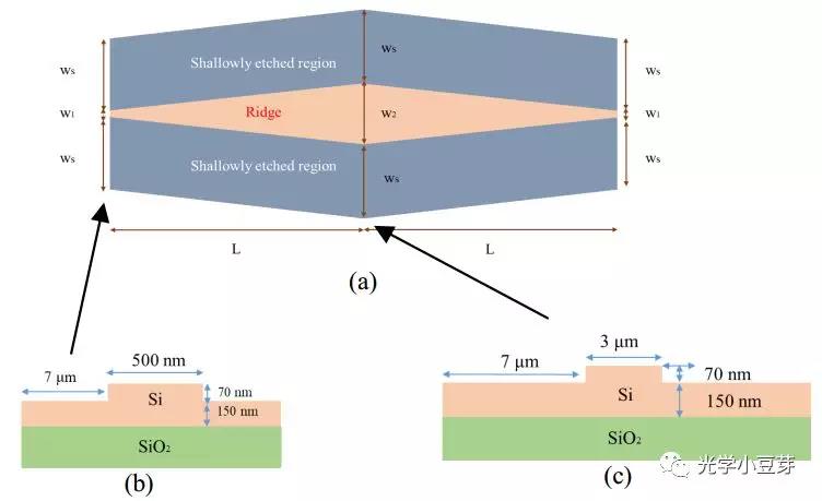 3)寬度漸變的脊形波導(dǎo)