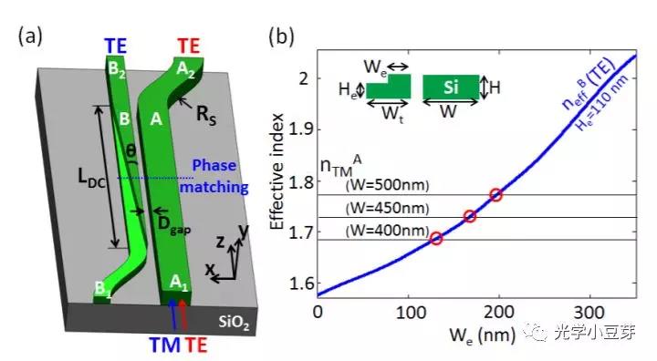 對(duì)于transceiver來(lái)講,其發(fā)送端可以保持工作在TE偏振下,但是當(dāng)光經(jīng)過(guò)光纖傳輸后,到達(dá)發(fā)送端的光場(chǎng)偏振狀態(tài)已經(jīng)發(fā)生了變化,部分光變成了TM光。為了解決這一問(wèn)題,人們提出了多種片上偏振相關(guān)器件。