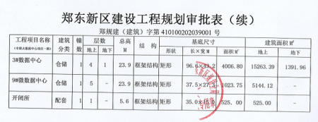 據(jù)公告,由河南數(shù)字中原數(shù)據(jù)有限公司建設的中原大數(shù)據(jù)中心建設項目一期,現(xiàn)經(jīng)鄭東新區(qū)規(guī)劃分局鄭規(guī)建(建筑)字第410100202039001號許可證批準公示,該項目公示期為2020年1月13日至通過規(guī)劃竣工驗收。