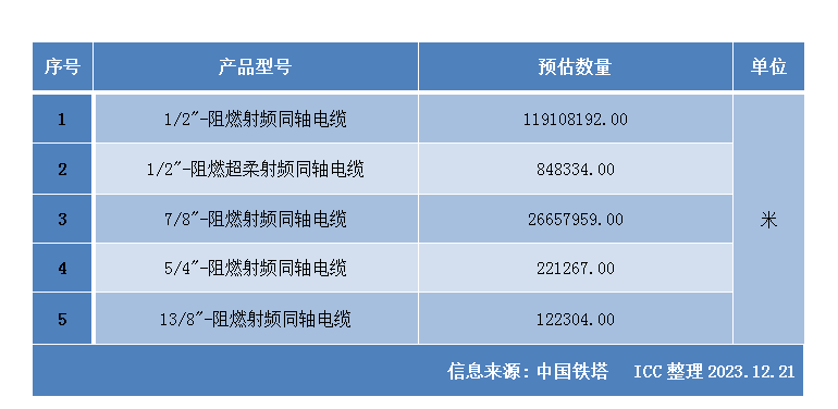 約1.47億米!中國鐵塔2024年饋線產(chǎn)品集采