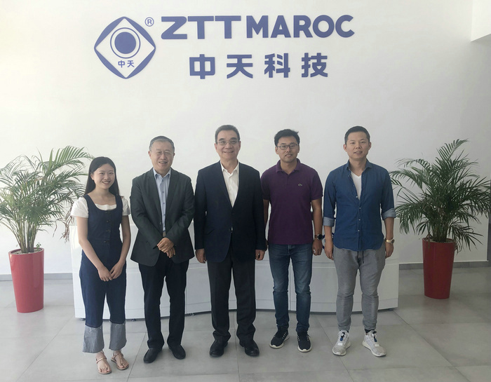 中國駐摩洛哥大使李立、丹吉爾汽車城免稅區(qū)總經(jīng)理JAAFAR先生以及中天科技全球銷售總監(jiān)王東陪同參觀。